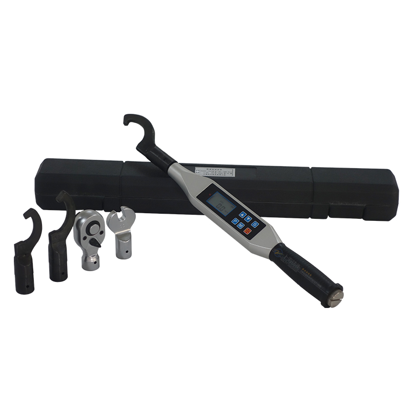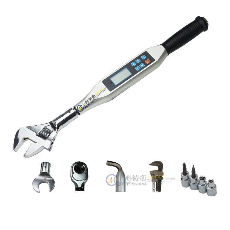 数显扭力扳手是一种带有扭矩测量机构的拧紧计量工具,它用于紧固螺栓和螺母,并能测出拧紧时的扭矩值,扭力扳手等级分为七个等级,等级越高精度就越低,铸衡厂家生产的SGSX系列钢结构高强螺栓数显扭力扳手精度等级为高精度1级,采用微处理器数字化处理技术,核心是应变计传感器.该数显扳手高精度求值,性能稳定,耗电量小,使用方便,本司安装检测钢结构螺丝数字扭矩扳手具有示值,峰值保持,预置报警,三种单位自动转换,扳手头可换,欠压显示,不使用时3分钟自动断电等功能.,其适用于汽车、摩托车、机械制造等行业的螺栓紧固检测及控制等。头部可另配开口头、活动开口头、勾头、梅花头、管钳头,外六角套筒、内六角套筒、套筒加长杆、特殊定制头部等。